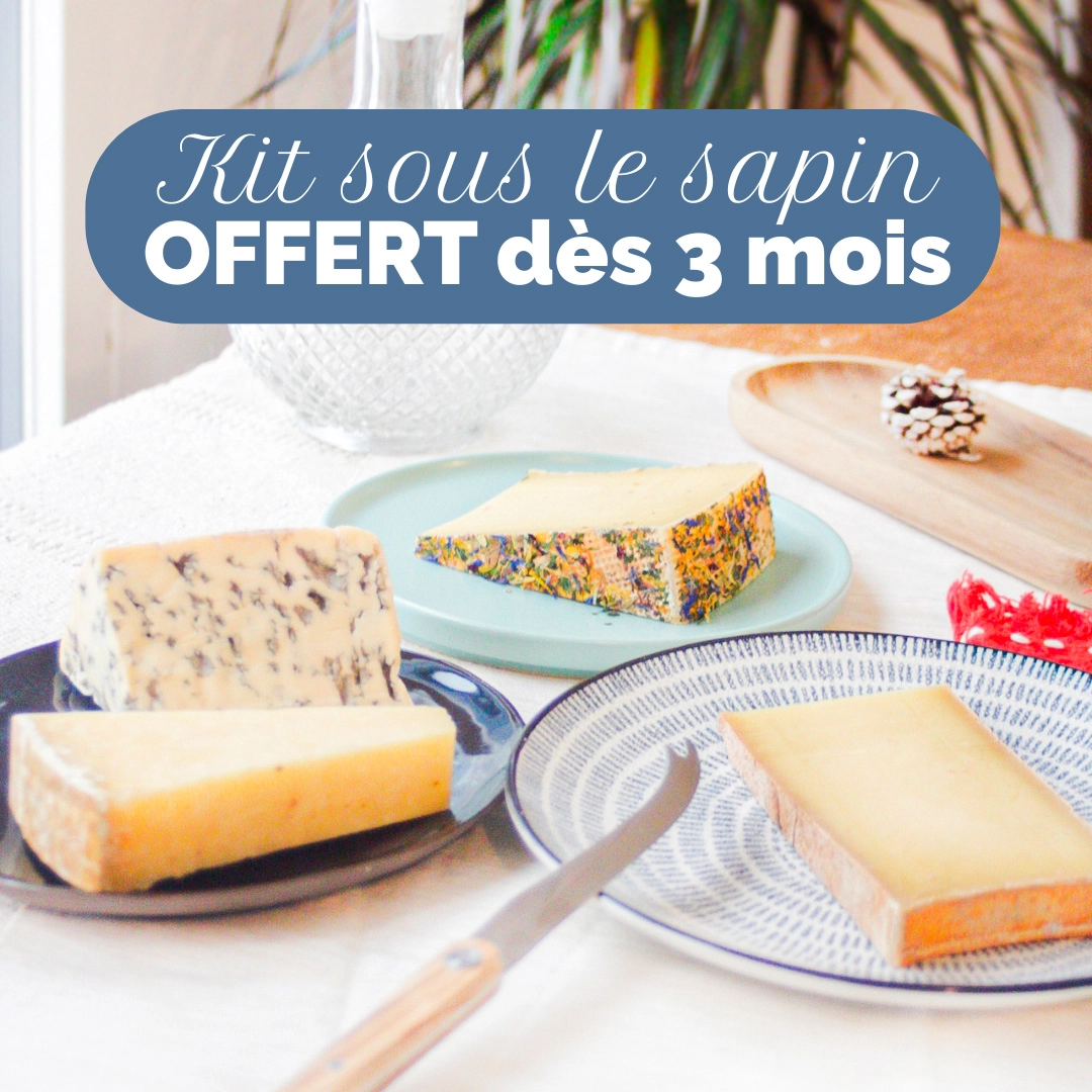 Jusqu'au 10 décembre, notre célèbre kit sous le sapin est OFFERT pour tous les abonnements de 3 mois et plus 🧀 Envoyé avant la première box, ce colis d'une valeur de 25€ vous permet d'annoncer la bonne nouvelle de l'abonnement à venir avec quelque chose de concret à glisser sous le sapin le soir de Noël 🎁